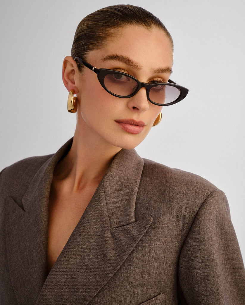 A perfect balance of sharp and sophisticated. The Blair is a micro cat-eye frame with a sculptural feel - featuring fine temples adorned with a twisted rope gold hardware that adds texture and a touch of vintage romance.