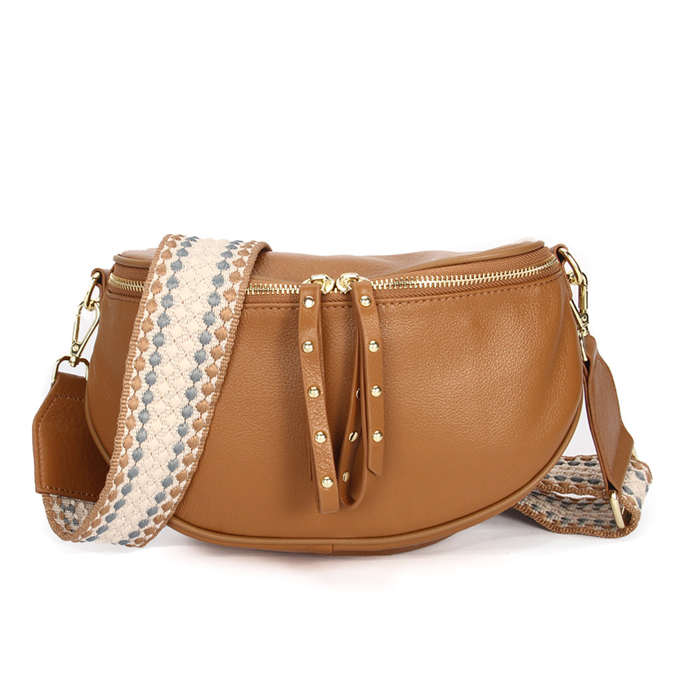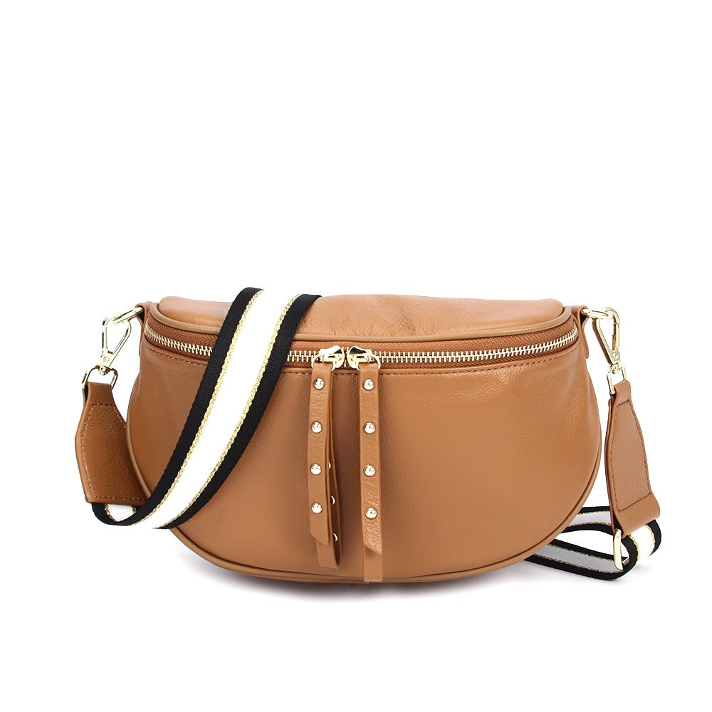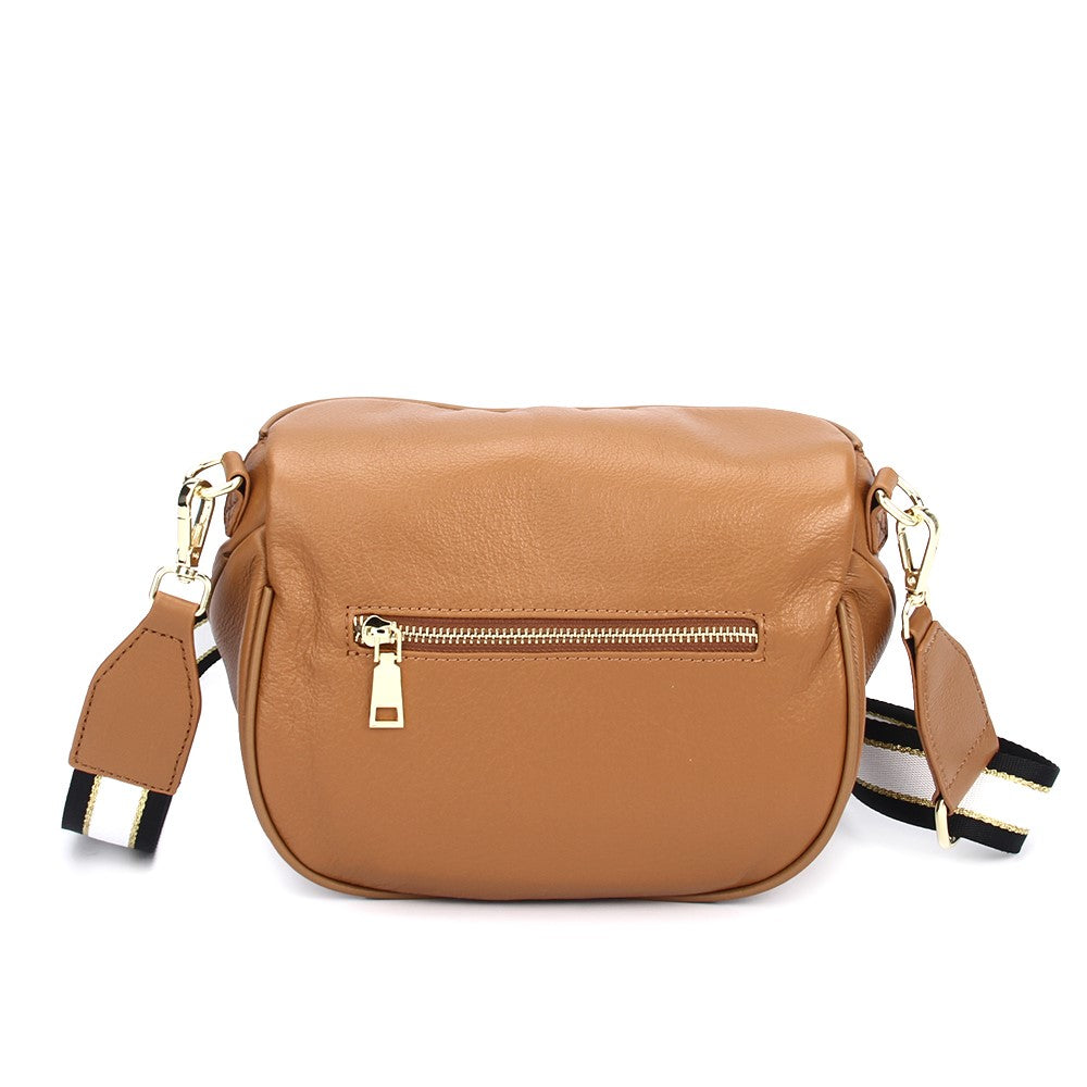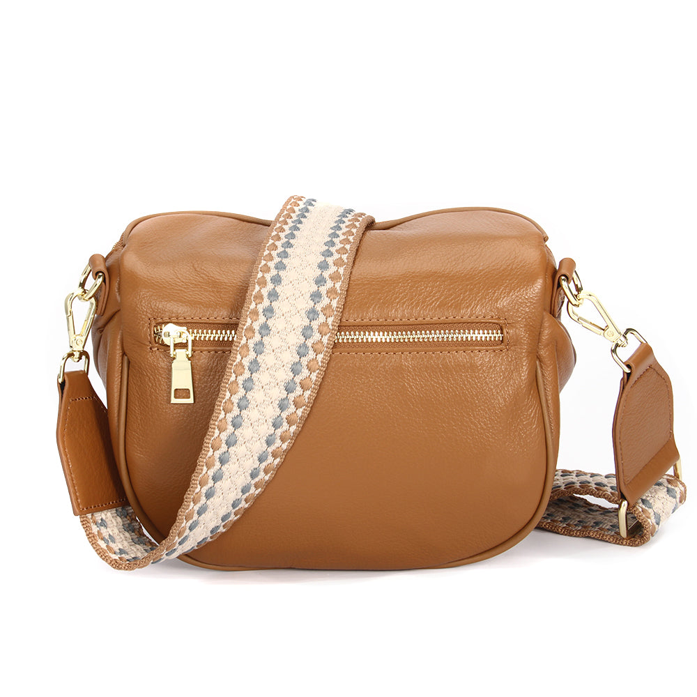 This beautiful  soft leather crossbody bag comes with a striking adjustable strap.