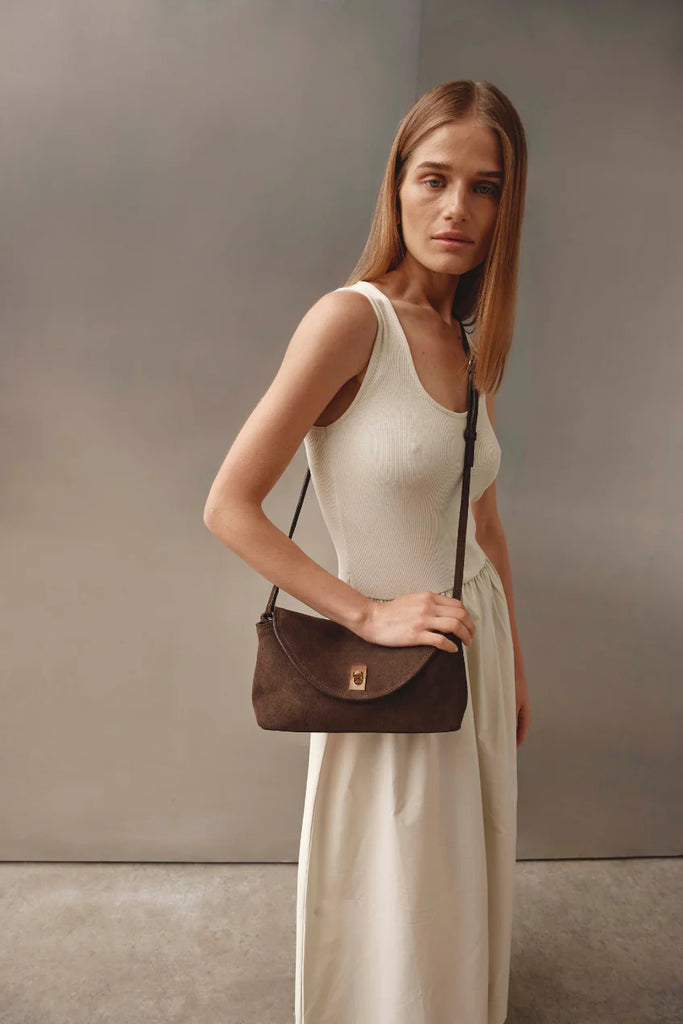 Vestirsi Sloane Dark Chocolate Suede Crossbody Clutch