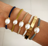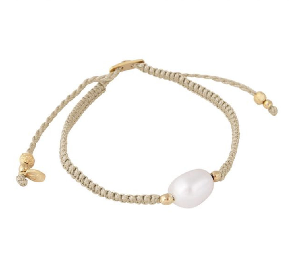 Add some candy to your arm with our best-selling freshwater pearl rope bracelet. Featuring freshwater pearl on grey cord with sterling silver 24k Italian gold plate finishings.