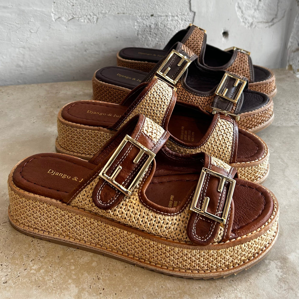 These leather slides are a classy warm-weather essential from Django & Juliette. VEXTA's woven texture and subtle hardware gives it slip-on appeal with all of your favourite summer ensembles.