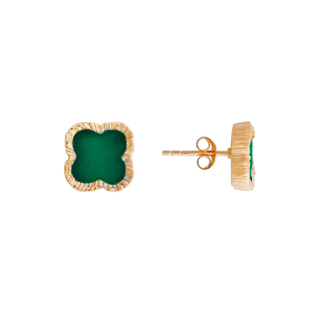 Fairley Green Agate Clover Studs