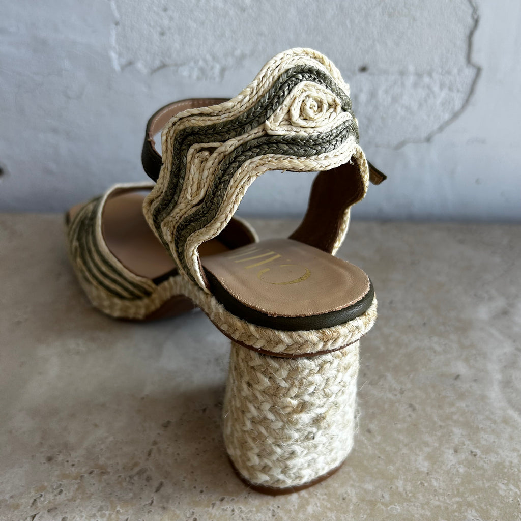 The Danae espadrilles by Gaimo showcase a natural bicolour cotton raffia design, finished with a subtle wave detail for a distinctive touch. Handmade in Arnedo, Spain, from 100% natural, high-quality materials, they offer the perfect balance of comfort and style, an effortless way to elevate your summer wardrobe.