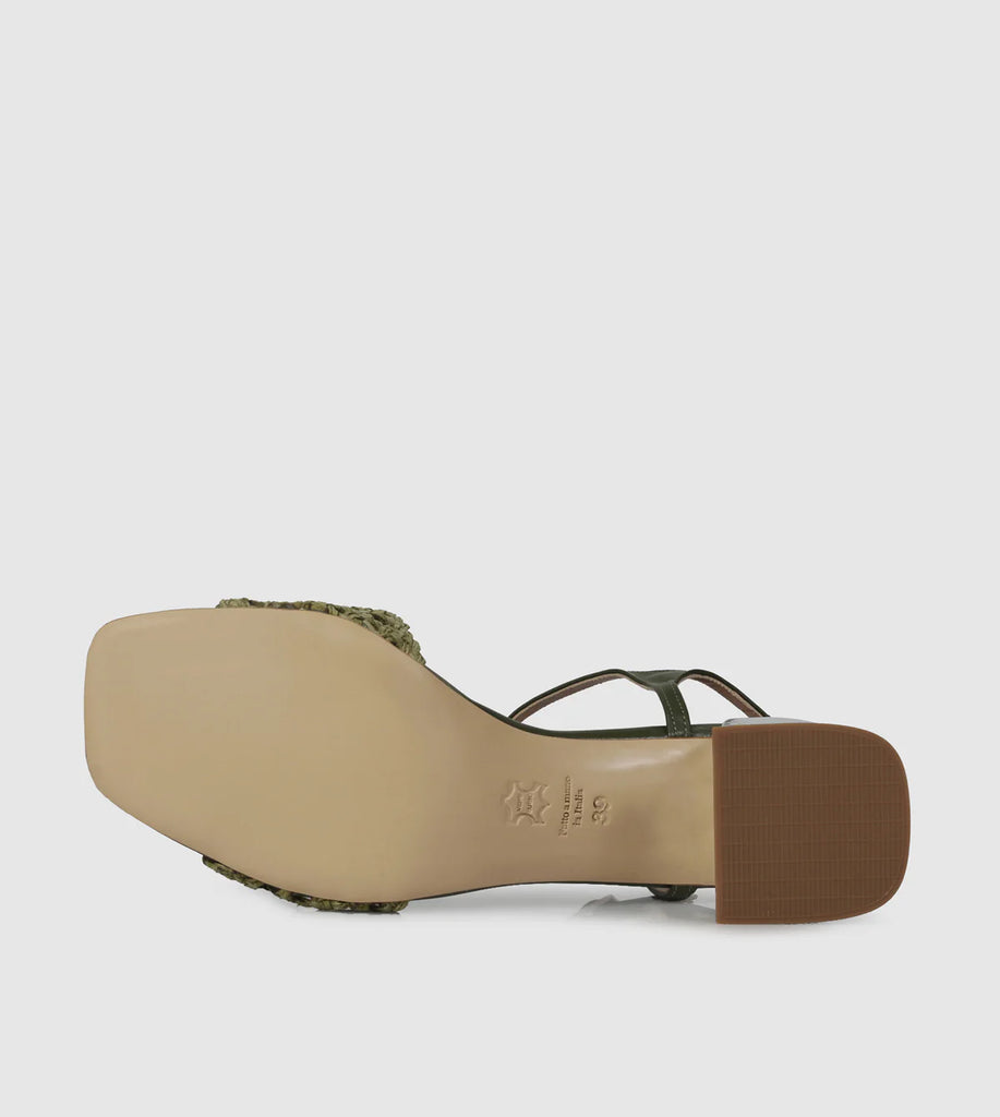 Elevate your style with Roxana Block Heels by S Sempre di. Made in Italy, these heels offer a fresh take on a classic y-strap design. The open basket weave wide strap and python printed leather sock, paired with the sturdy cool block heel, make these sandals perfect for both dressy and casual occasions. Stand out in cool fashion with these versatile heels.