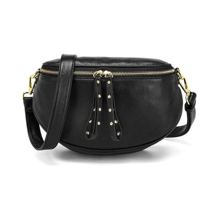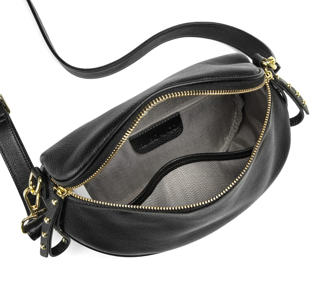 It is fully lined, with an internal pocket and zip for added convenience. Designed to be both robust and versatile, it can be worn comfortably across the front or back.