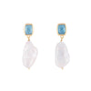 A striking balance of elegance and individuality, these Blue Topaz Keshi Drops feature luminous keshi pearls paired with faceted blue topaz gemstones. Each pearl is uniquely shaped, celebrating nature's imperfections and adding a touch of organic charm. Set in high-polish sterling silver with 18k gold plating, these earrings bring a soft shimmer and vibrant hue to any lookāday or night.