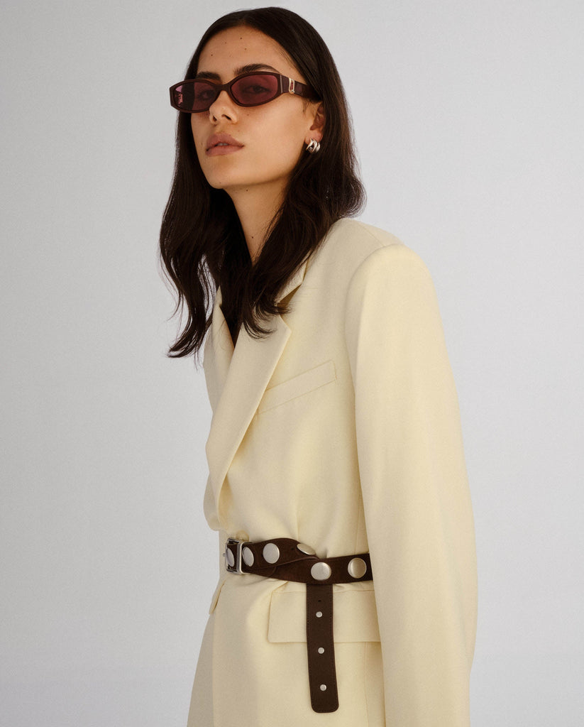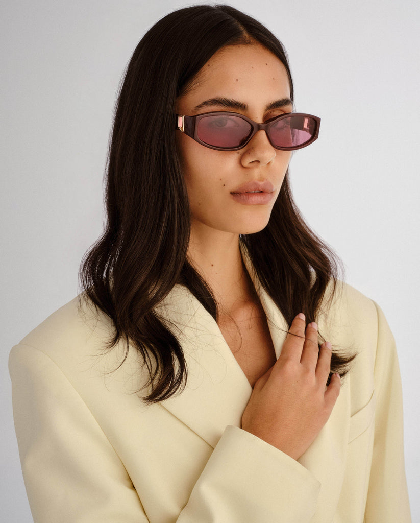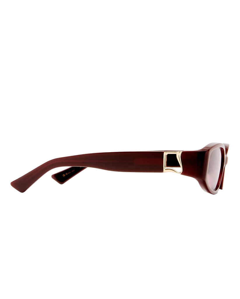 A refined take on a modern staple. This luxe rectangle frame features sculpted angles and polished gold hardware detailing at the temples. Understated yet striking, these sunglasses are designed for the girl with effortless style and a sharp eye for detail. Clean lines, timeless shape - made to go with everything.