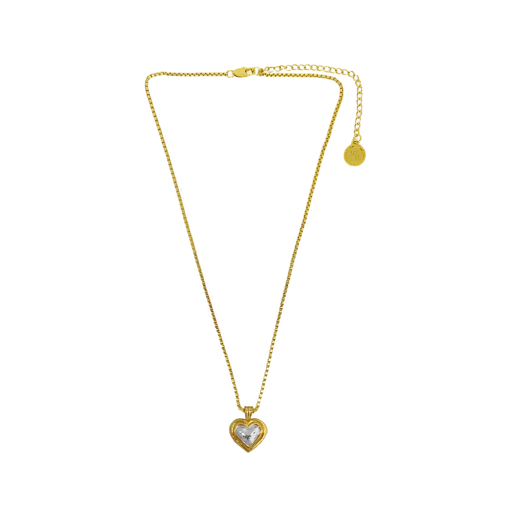 The Celine Necklace brings a playful twist to our Beloved collection. Featuring a mixed-metal heart framed in radiant gold, it balances charm with intention—striking the perfect note between fun and refined. Designed for the one who chooses to bring love to herself first, this necklace is a gentle keepsake of self-devotion. Its lighthearted silhouette makes it an easy everyday piece, while its thoughtful detailing will have you feeling ever-so-chic.
