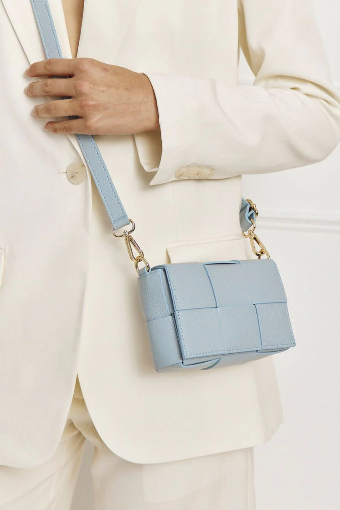 Featuring our woven pebbled Italian leather panels, Margot Mini is the smaller version of our Margot and Margot XL.