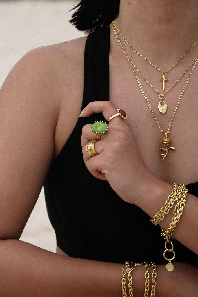 Looking for a show stopping statement ring? Look no further girls, Bianca is a Queen! A cocktail ring with uniqueness, this oval cabochon style in Green Mojave Turquoise is the most gorgeous stone and guaranteed to gain compliments wherever you go. A personal favourite, this au naturale green beauty truly shines.