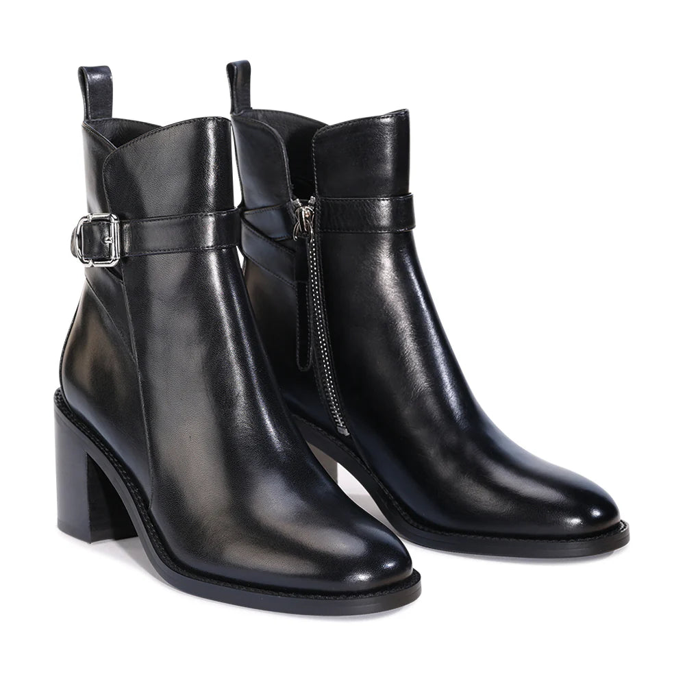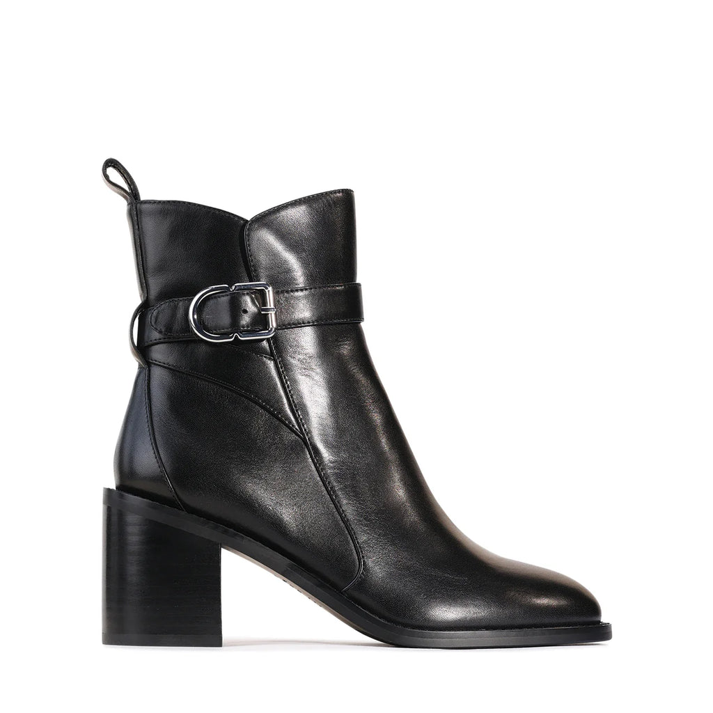 Introducing CHAVEZ, the epitome of luxury ankle boots. These two-tone leather boots feature a convenient pull-out tab for effortless access and a stylish ankle strap with a metal buckle. The block heel, measuring at a comfortable 70 mm, adds sophistication to the design. Handcrafted with 100% Aniline Calf Napa leather, these boots are the perfect blend of style and quality. Elevate your shoe collection with CHAVEZ.