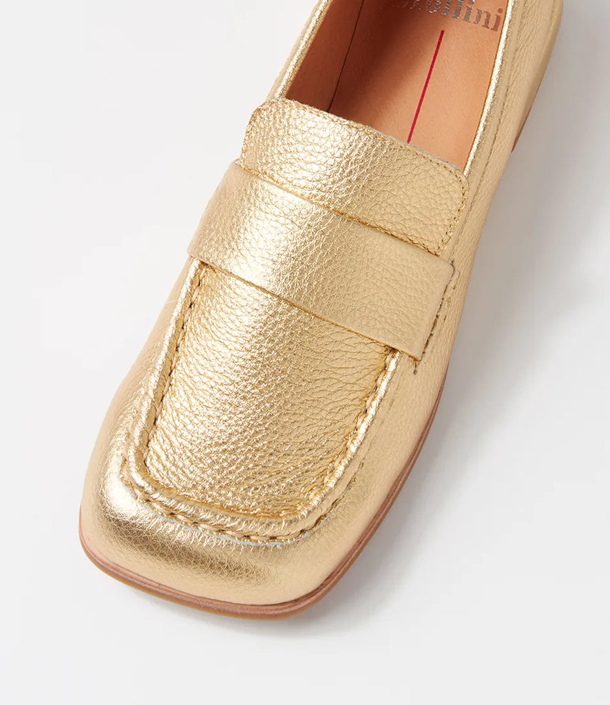 Mollini Clarify Gold Tumble Leather Loafers