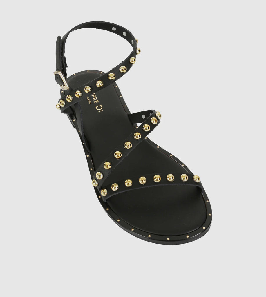 Effortlessly chic and endlessly comfortable, these sandals will be your go-to choice this summer. Made in Italy with veg-tan leather and a soft leather padded insole, the flat sandal features a unique metal stud detailing for a touch of edge. Perfect for both day and night wear.