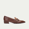 A modern update on the classic loafer, this pointed-toe flat is crafted from smooth leather and finished with a bold maxi buckle and eyelet detailing across the instep for a statement touch.