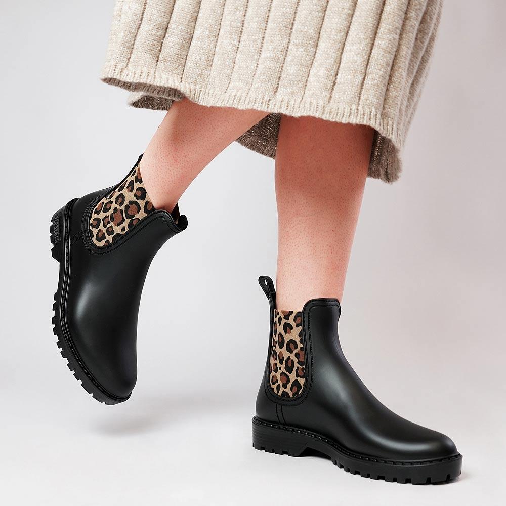 Gaudi rubber boots with matte finish in black and leopard print. Made in Spain. Add a touch of style to your looks without forgetting about practicality. No puddle will be able to stop you as long as you wear our Gaudi. This model is perfect for everyday wear, you'll be able to get a lot out of them!