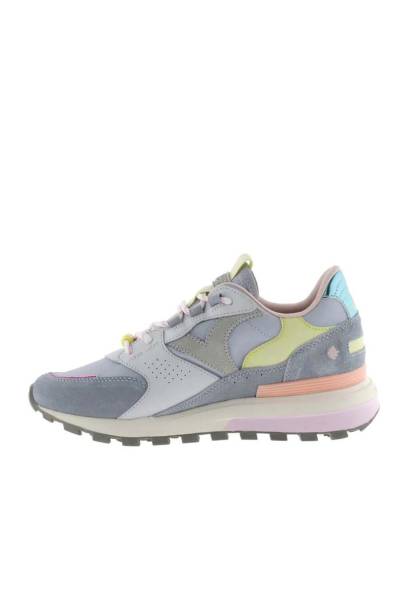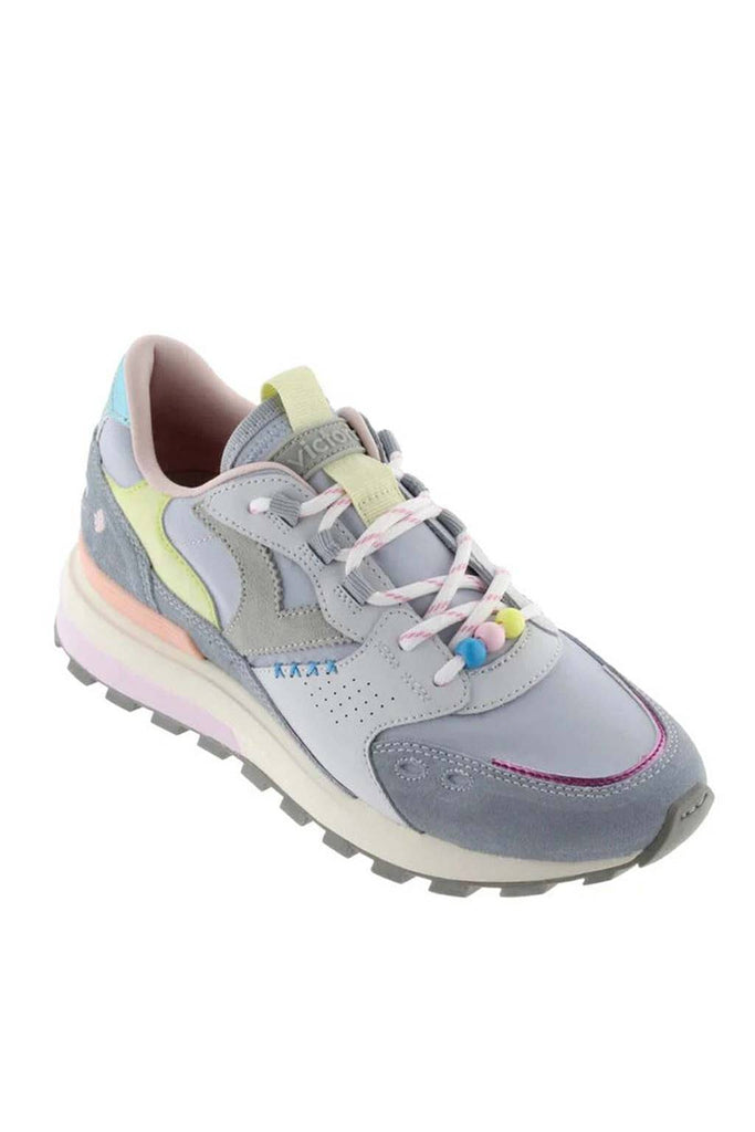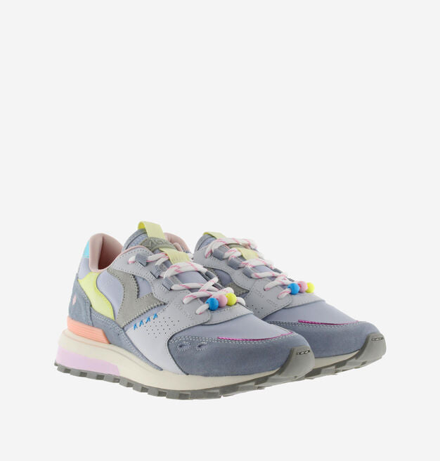 Multicolored sneaker in pastel tones, designed to bring softness and style to any look. They incorporate unique details in stitching, decorative beads and rounded laces that add a distinctive touch. Their mix of colors and textures makes these sneakers a versatile and modern option for everyday wear.