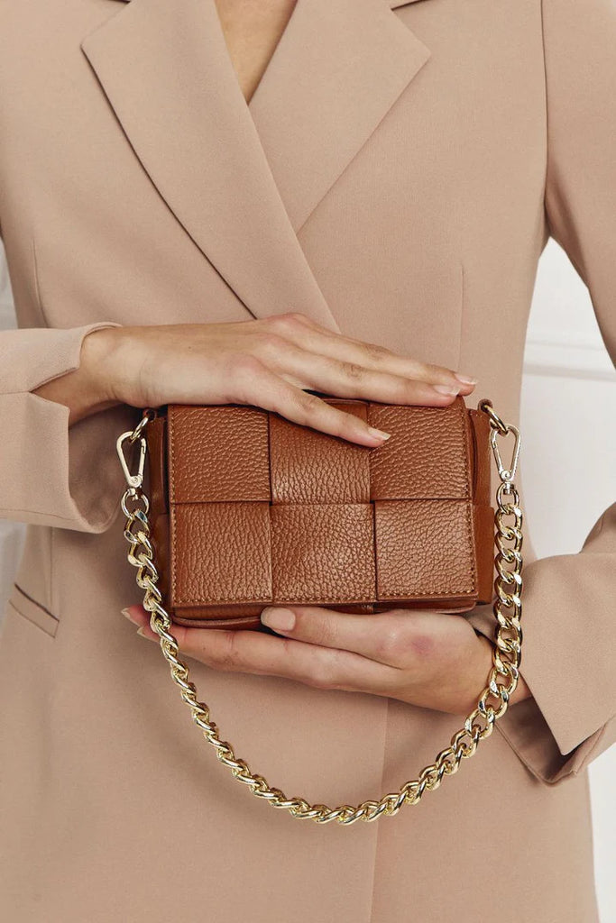 Featuring our woven pebbled Italian leather panels, Margot Mini is the smaller version of our Margot and Margot XL.