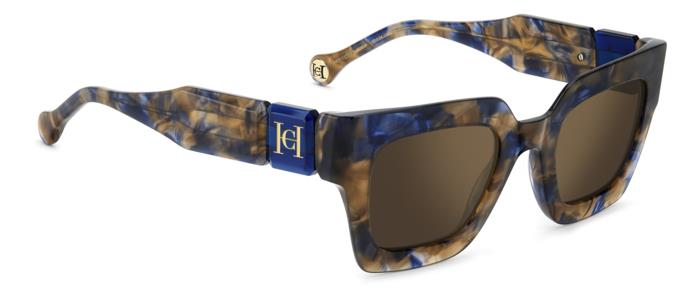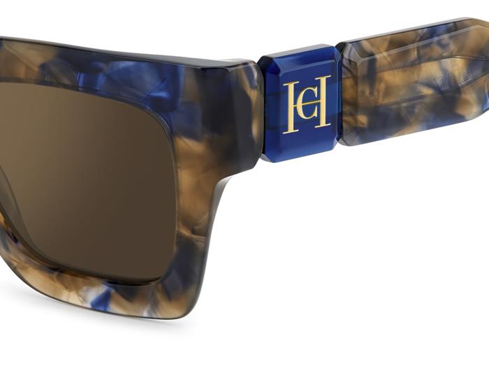 Sleek and sophisticated, the Carolina Herrera HER0328 sunglasses feature a striking blue havana acetate frame for a modern, elevated look. The bold silhouette is balanced with refined detailing, making them an effortless choice for everyday wear or statement styling. Finished with tinted lenses offering full UV protection, this design blends fashion and function with signature Carolina Herrera elegance.