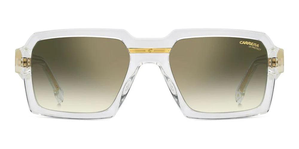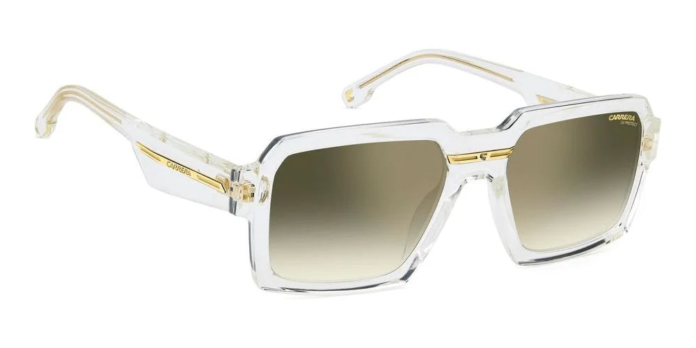 Sleek style and iconic details define these made-in-Italy Carrera sunglasses. The geometric front is the brand's take on current trends and the bold temples make a statement with oversize appeal. Multiple colours are available, including clear frames. Every pair features Carrera's classic metal insert.
