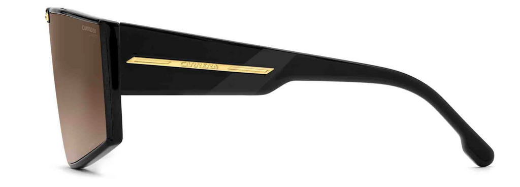 These Carrera shield sunglasses are made to stand out. The single-lens front is striking, especially in the mirrored version. A metal plaque with the brand’s C logo sits at the centre top, repeated on the oversized temples that match Carrera’s bold personality. Made in Italy, they come in different colours, including a transparent option.