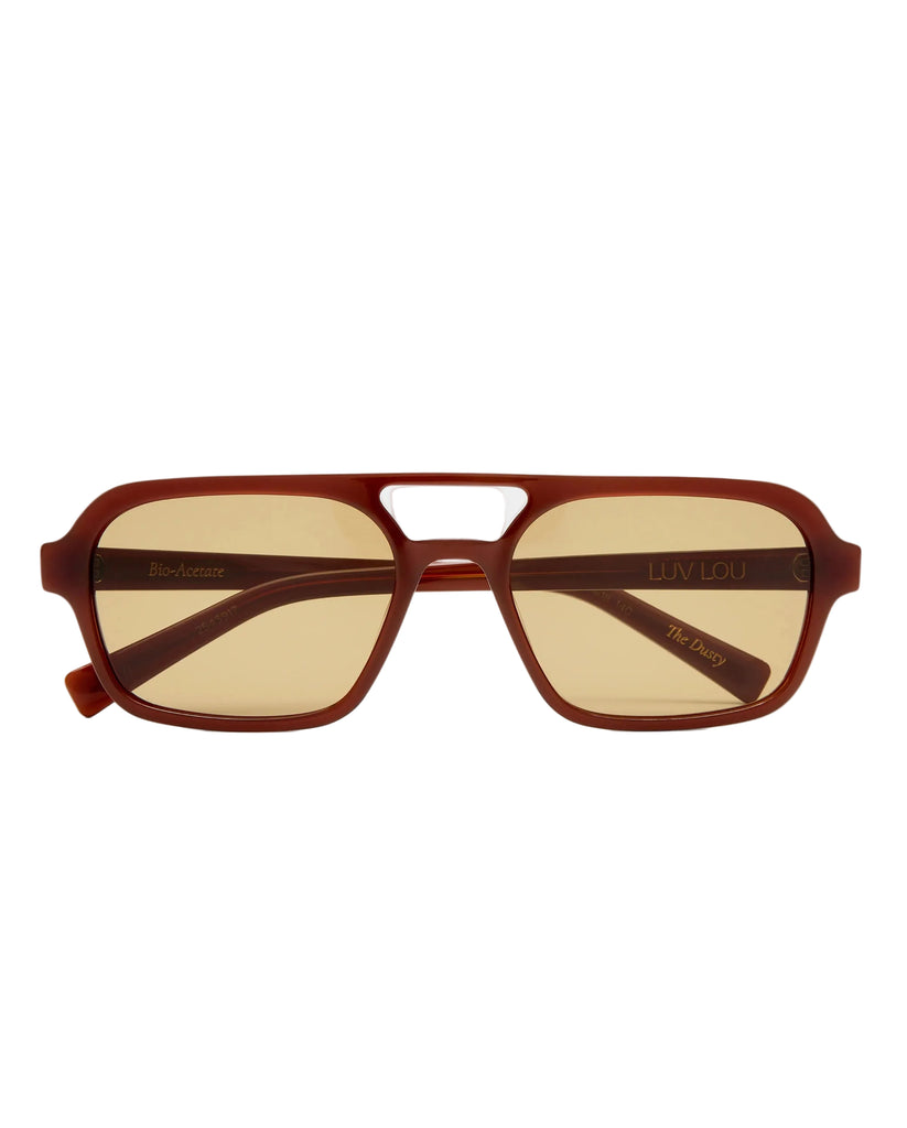 The Dusty is your true vintage aviator frame, large in structure but soft when shaping your face. The style features subtle gold rivets on the outer arm temple and is a nod to the 70's era.