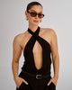 • Finished in a premium black frame with tan gradient lenses.