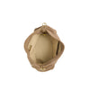One main beige cotton-lined compartment featuring a small zipped pocket for valuables, plus one open pocket.