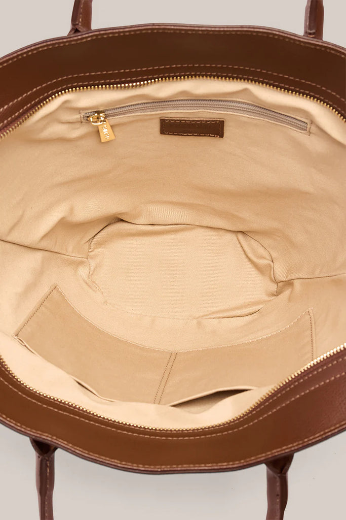 The sleek silhouette and elongated handles make it comfortable to carry, while the secure zip closure ensures everything stays in place. From workdays to weekends, the Jamie transitions effortlessly, adding a touch of understated luxury to every look.
