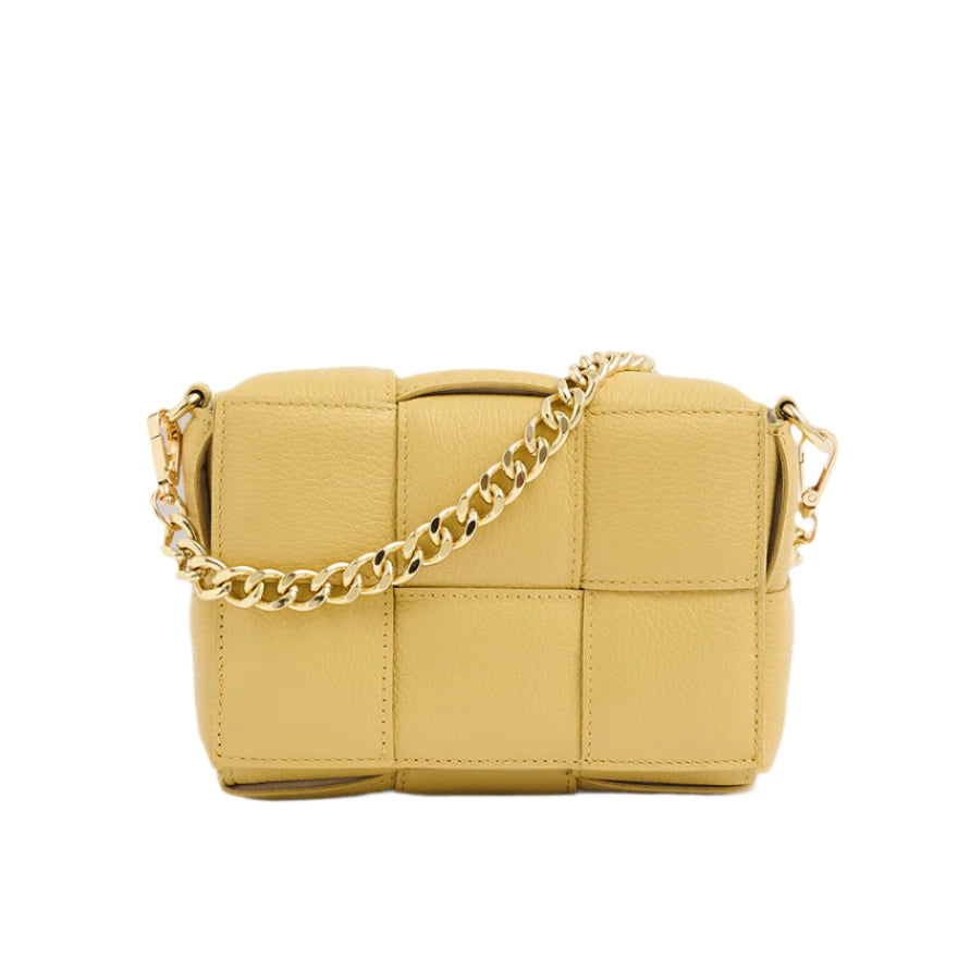 Woven Italian leather panels in a luxe padded, pebbled leather are the feature of this stunning statement bag. Complete with the choice of two straps, choose between a short chain or a long adjustable crossbody strap (both removable) depending on the occasion.