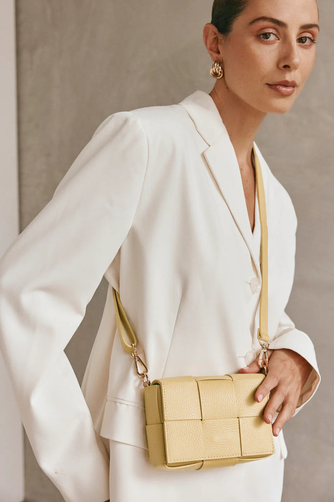 Featuring our woven pebbled Italian leather panels, Margot Mini is the smaller version of our Margot and Margot XL.