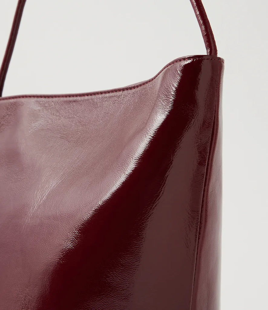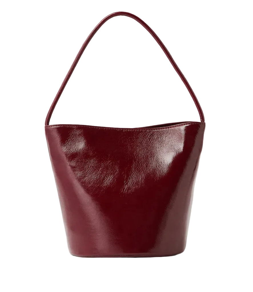 NOLYA by Mollini is a sleek, softly structured handbag designed for everyday ease. Crafted in glossy patent leather, its clean bucket silhouette and subtle stitching detail give it a modern, polished feel that works effortlessly from day to night.