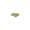 Elegant with a hint of edge, the Maia Ring is a modern relic inspired by radiant ancient craftsmanship. Featuring a ribbed, circular band in gold, it holds two rectangular cubic zirconia stones in textured bezel settings—designed to catch the light like sunlit waves.