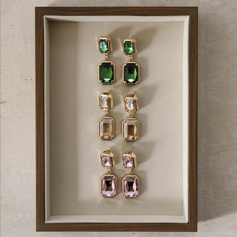 The Florian Earrings by Zahar are designed to dazzle, featuring two faceted emerald-cut pink stones set in gold frames. These drop earrings add a refined pop of colour to any look - perfect for weddings, events, or a standout everyday moment.