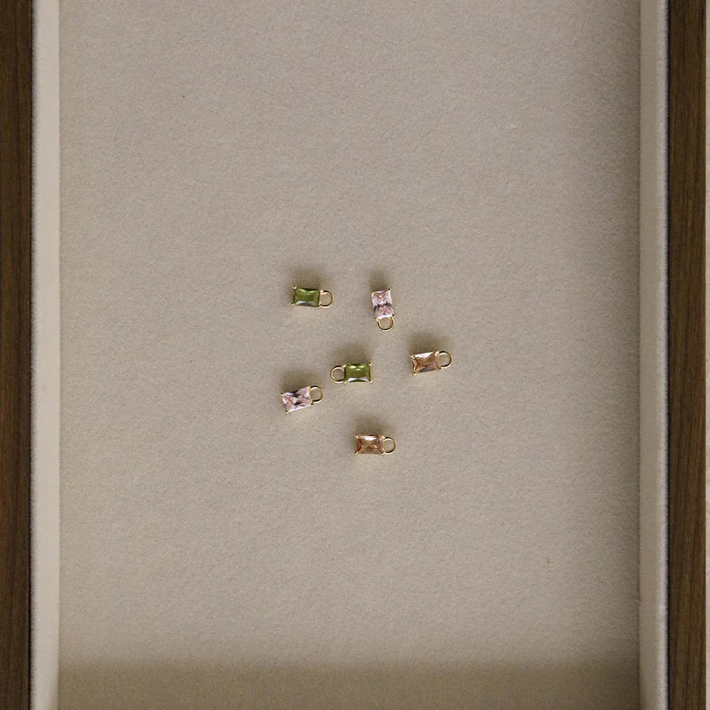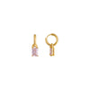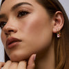 The Tiana Earrings by Zahar feature a mini gold hoop with a suspended emerald-cut green stone. The faceted drop catches the light beautifully, adding a fresh pop of colour to your everyday stack or evening look.